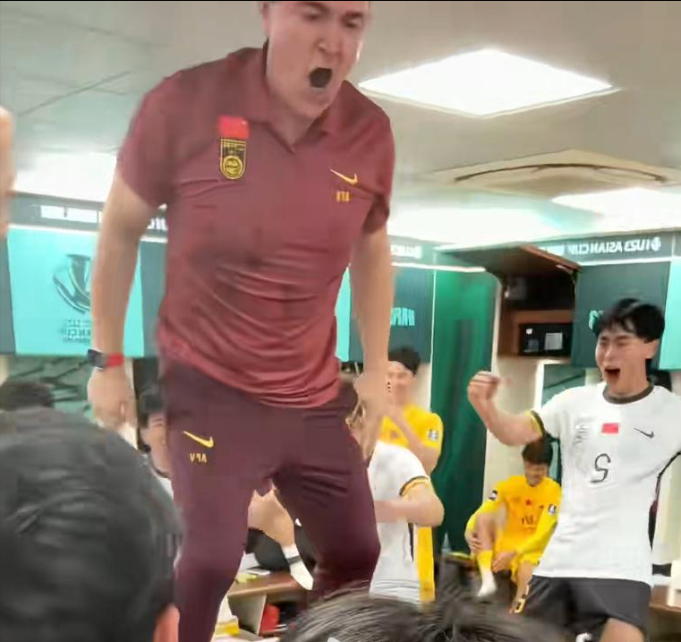 在赢下比赛之后,国足的更衣室也是非常疯狂,我们终于可以喊出那一句计划有变,准备夺冠。